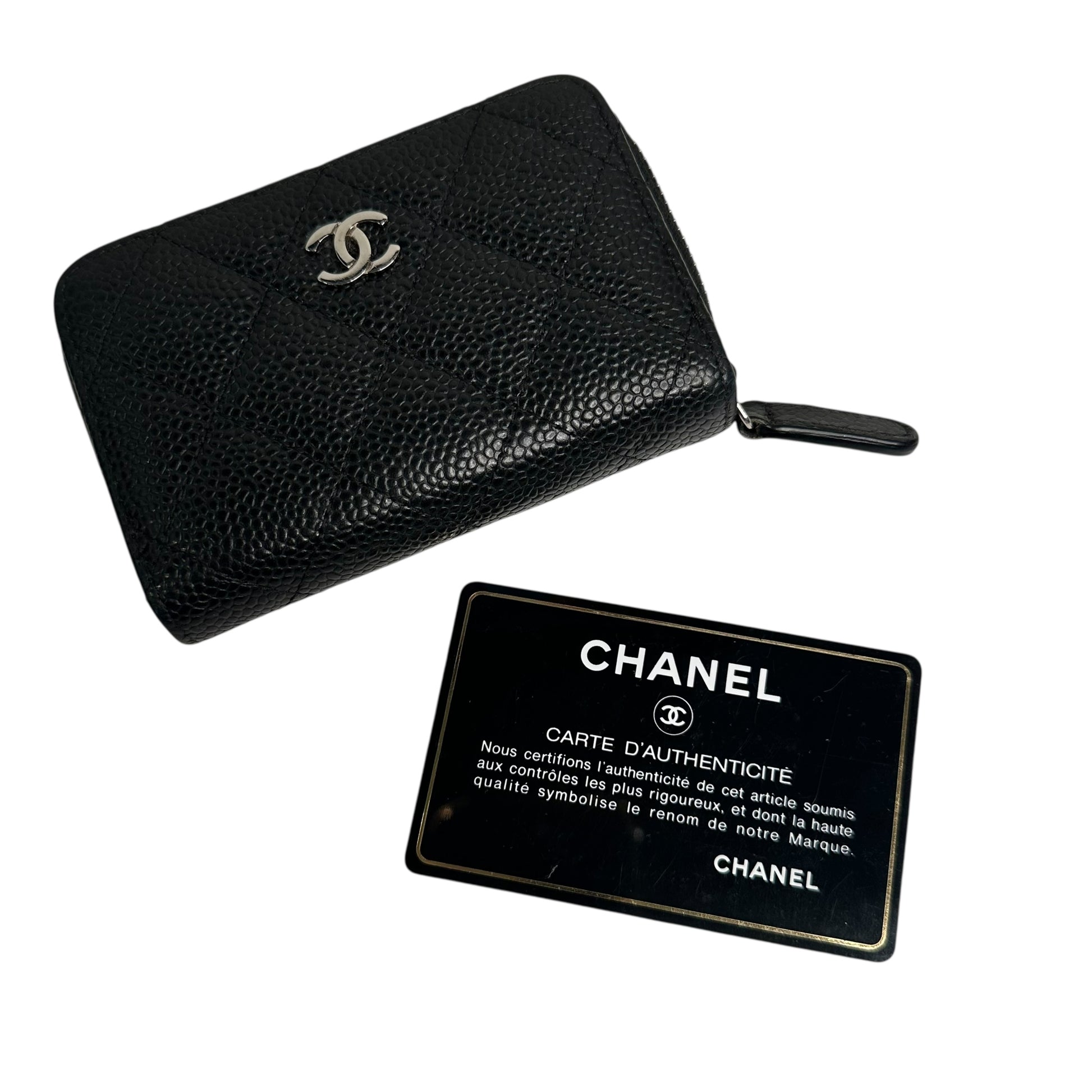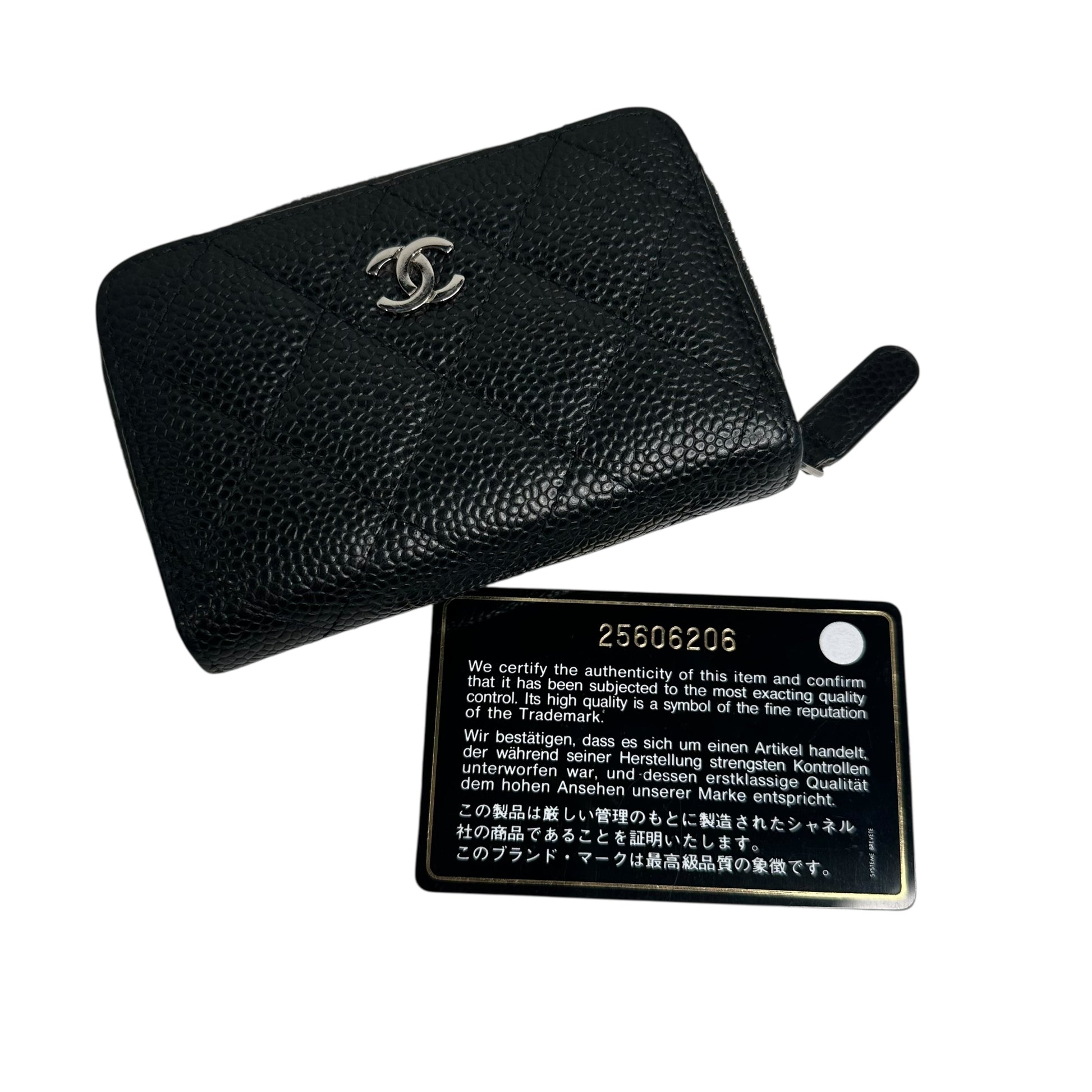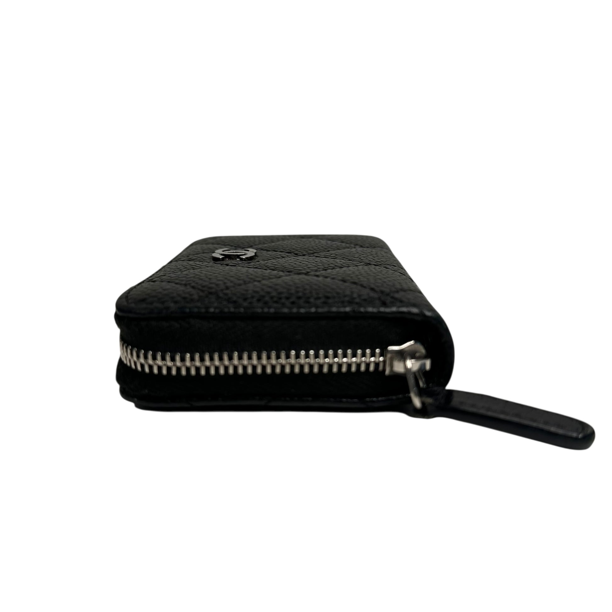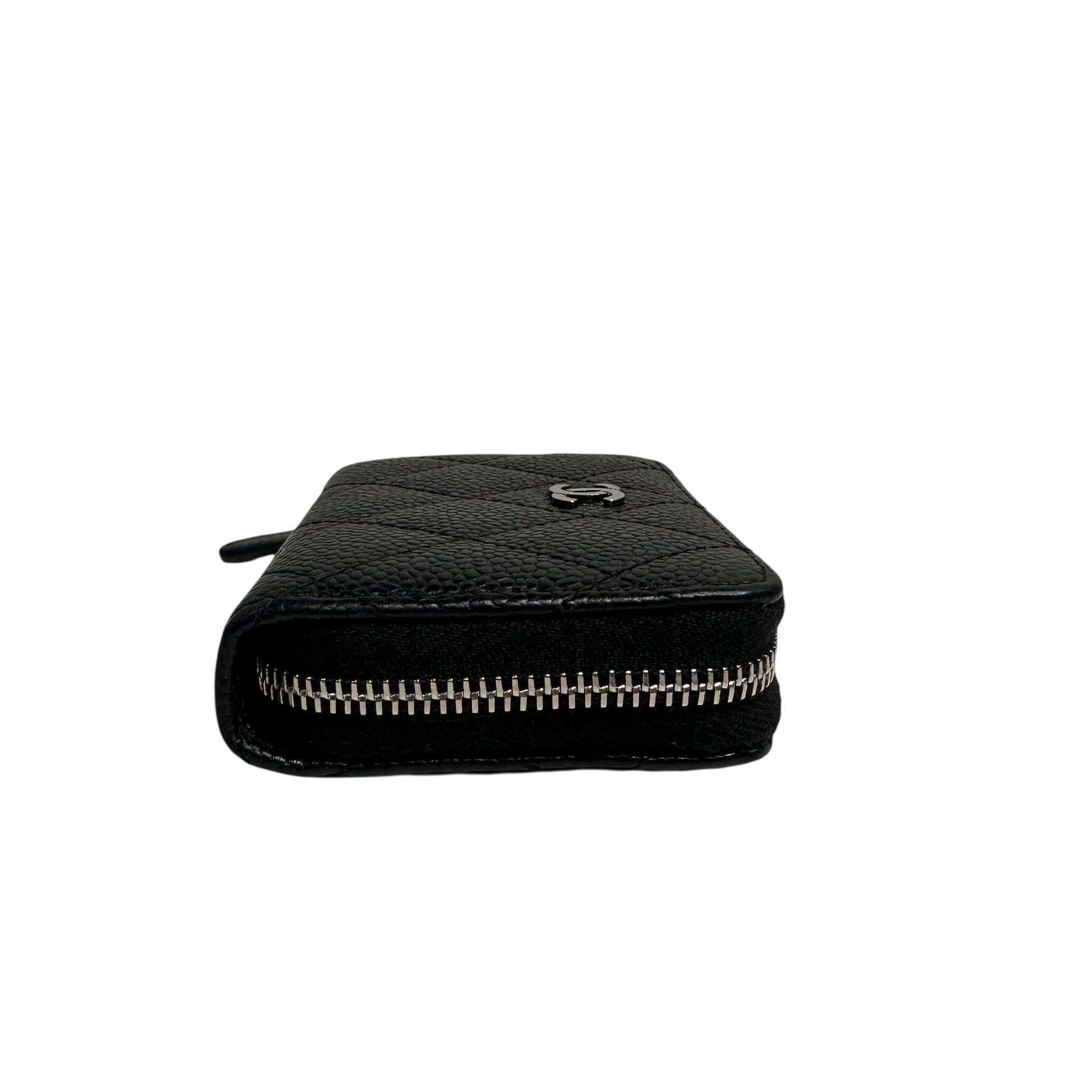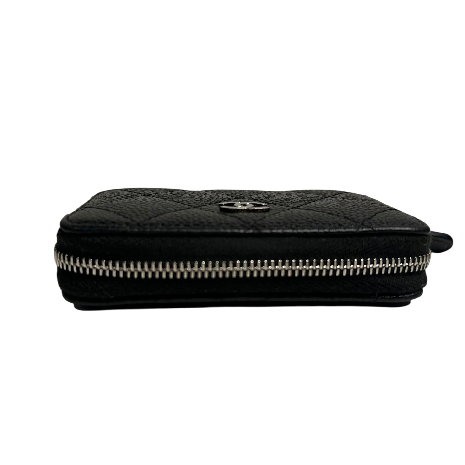 Chanel Zip Around Wallet – Black Caviar Leather with Silver Hardware