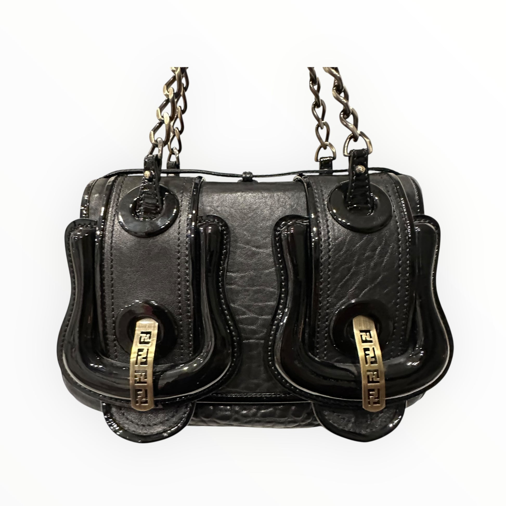 Condition: Excellent vintage condition with minimal signs of wear. The patent and calfskin leather exterior is beautifully preserved with minimal signs of wear. The structure remains sharp, hardware gleams with signature Fendi detail, and the interior is clean and well-kept. A statement-making collector’s piece from one of Fendi’s most coveted eras.