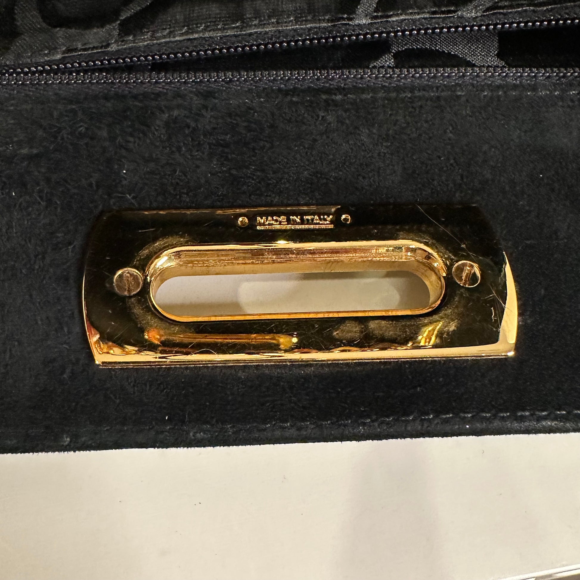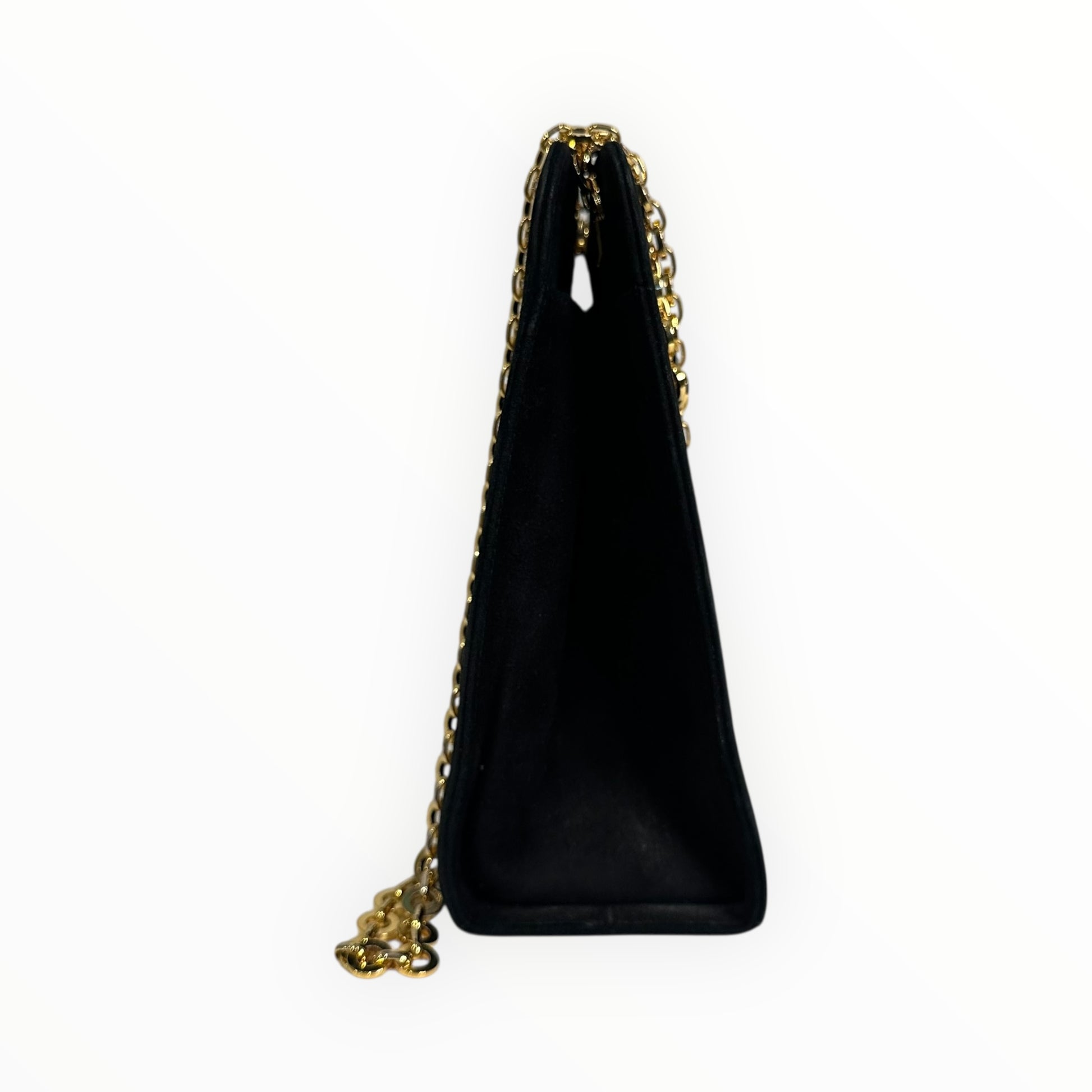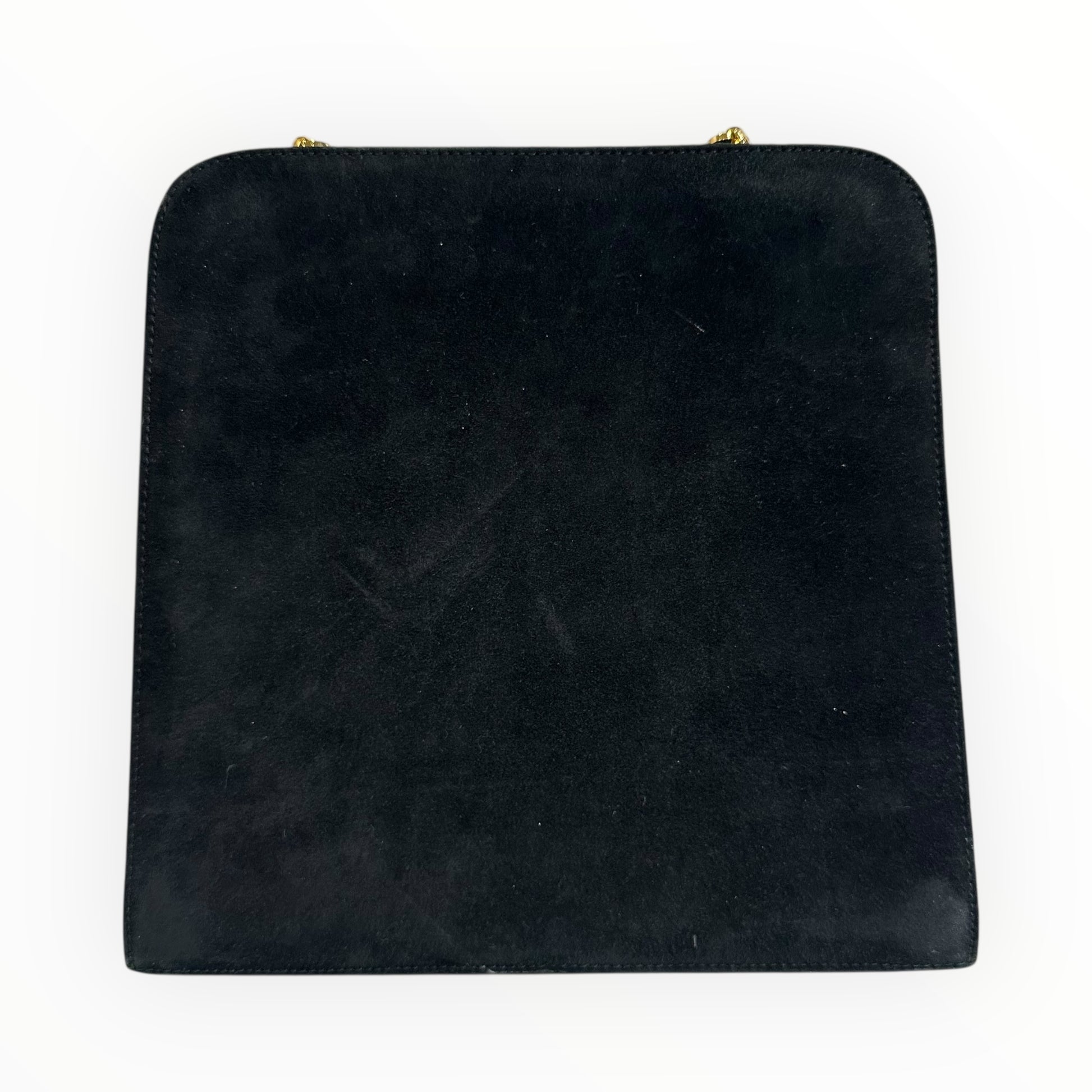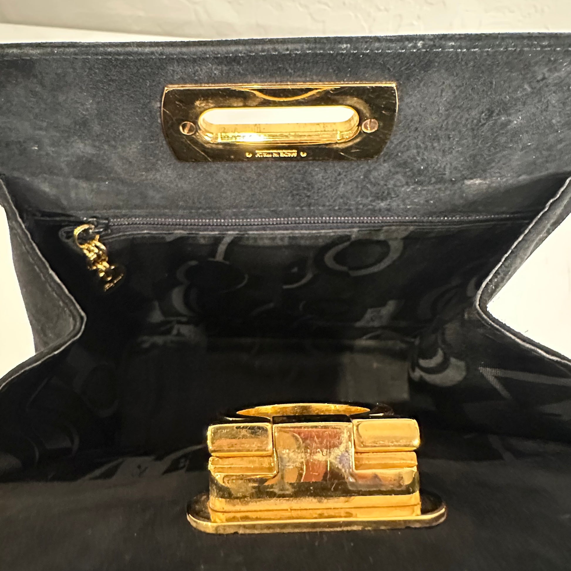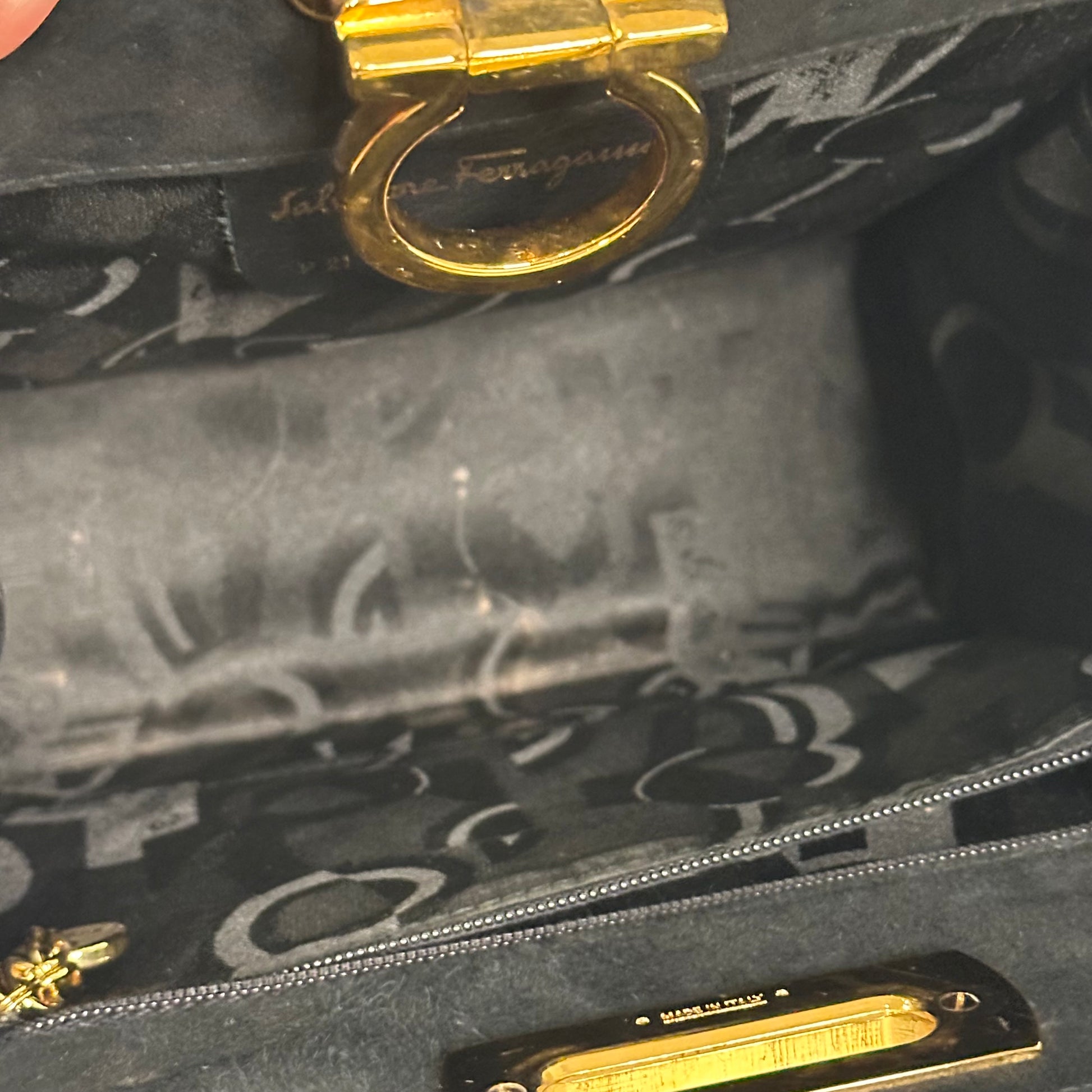 Salvatore Ferragamo Vintage Gancini Gold Chain Shoulder Bag in Black Suede