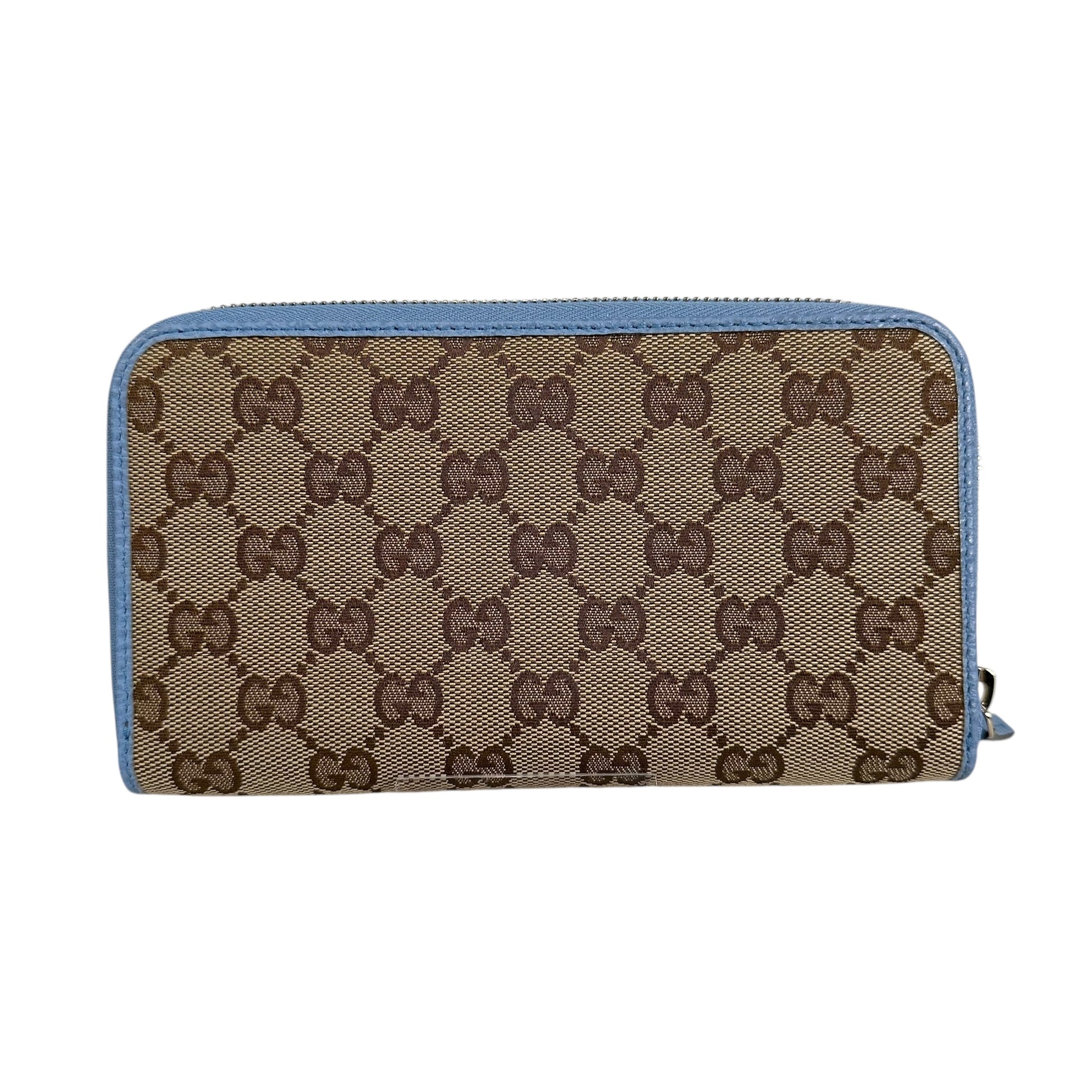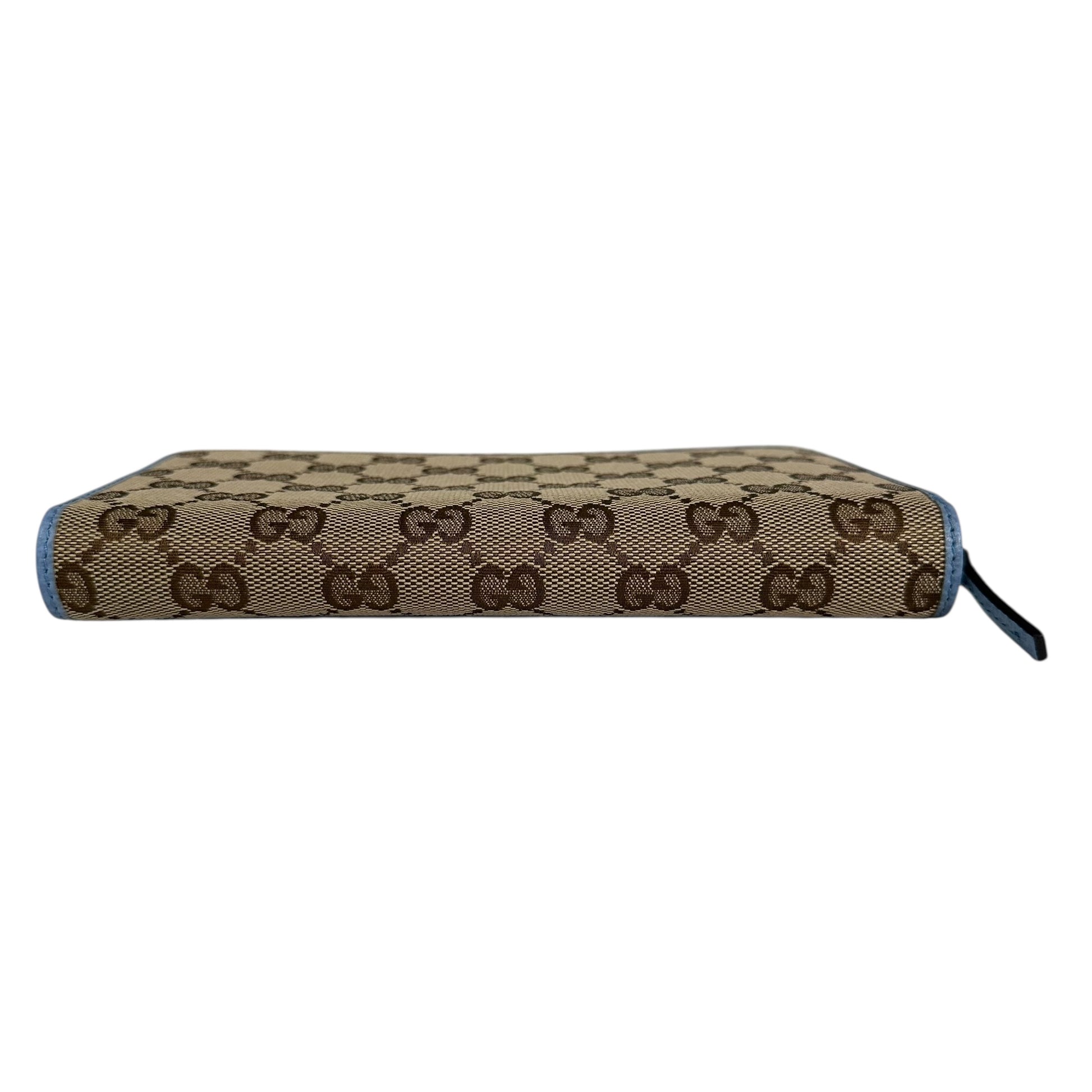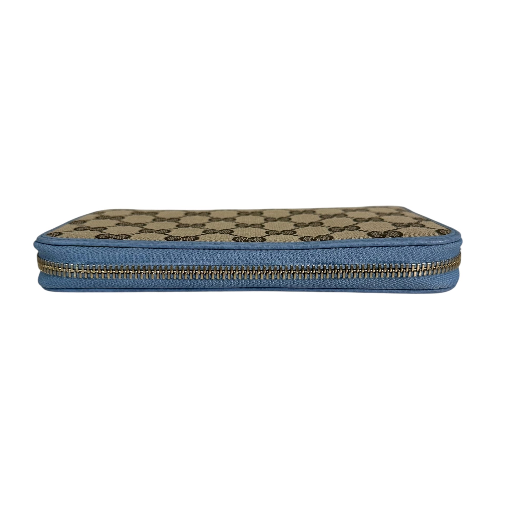 Gucci Monogram Dollar Calfskin Zip-Around Wallet Beige Ebony Mineral Blue