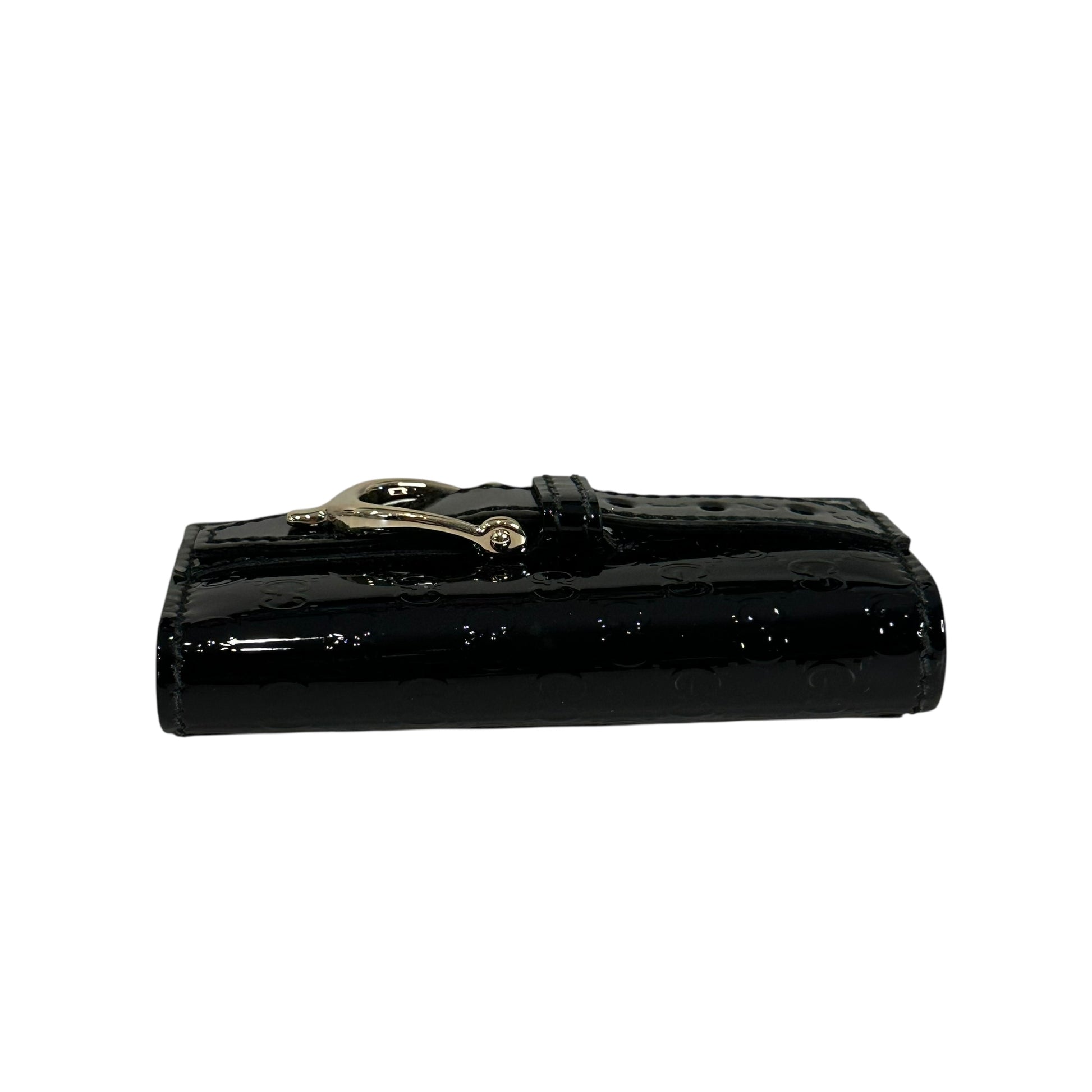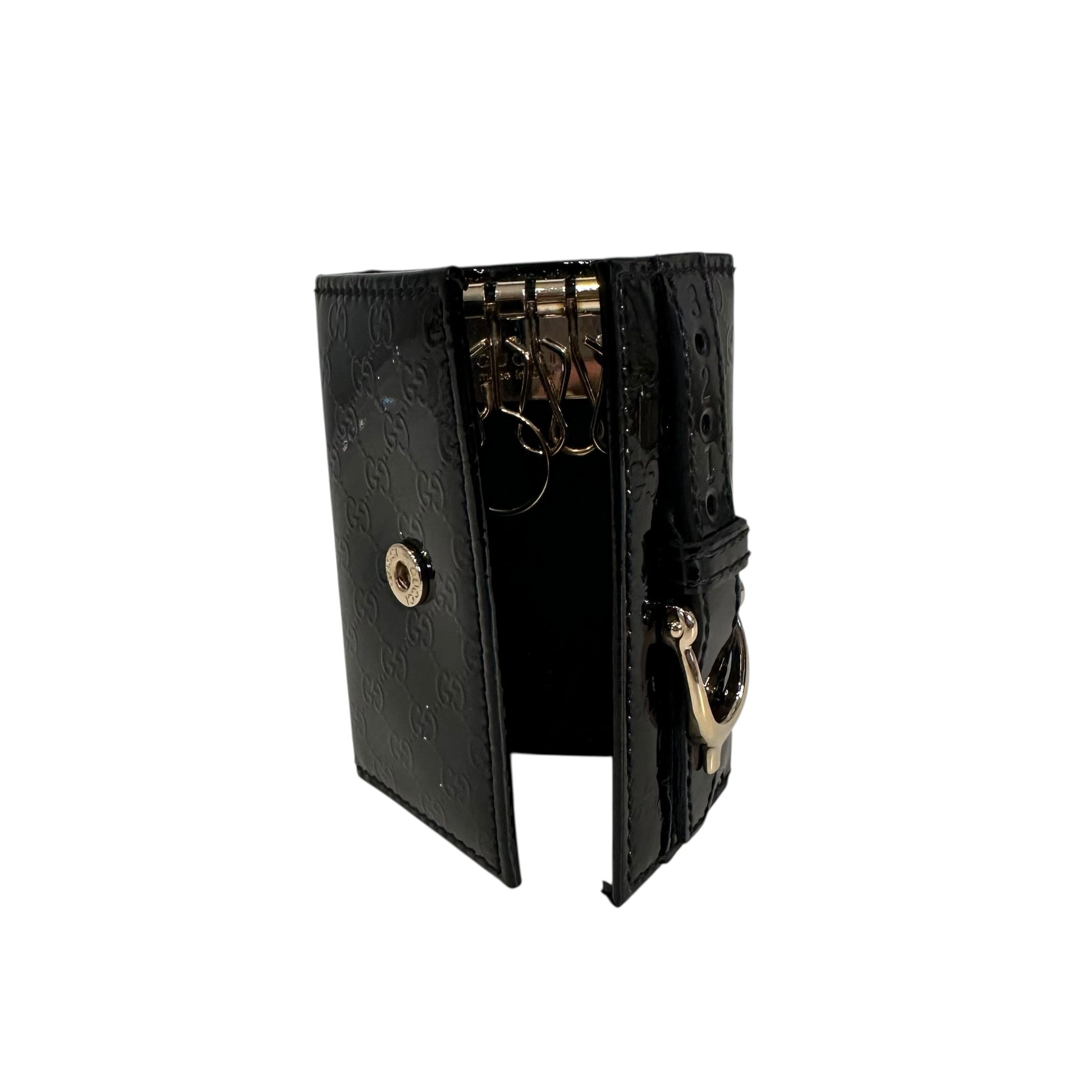 Gucci Microguccissima Patent Leather 6-Key Holder – Black with Gold Hardware