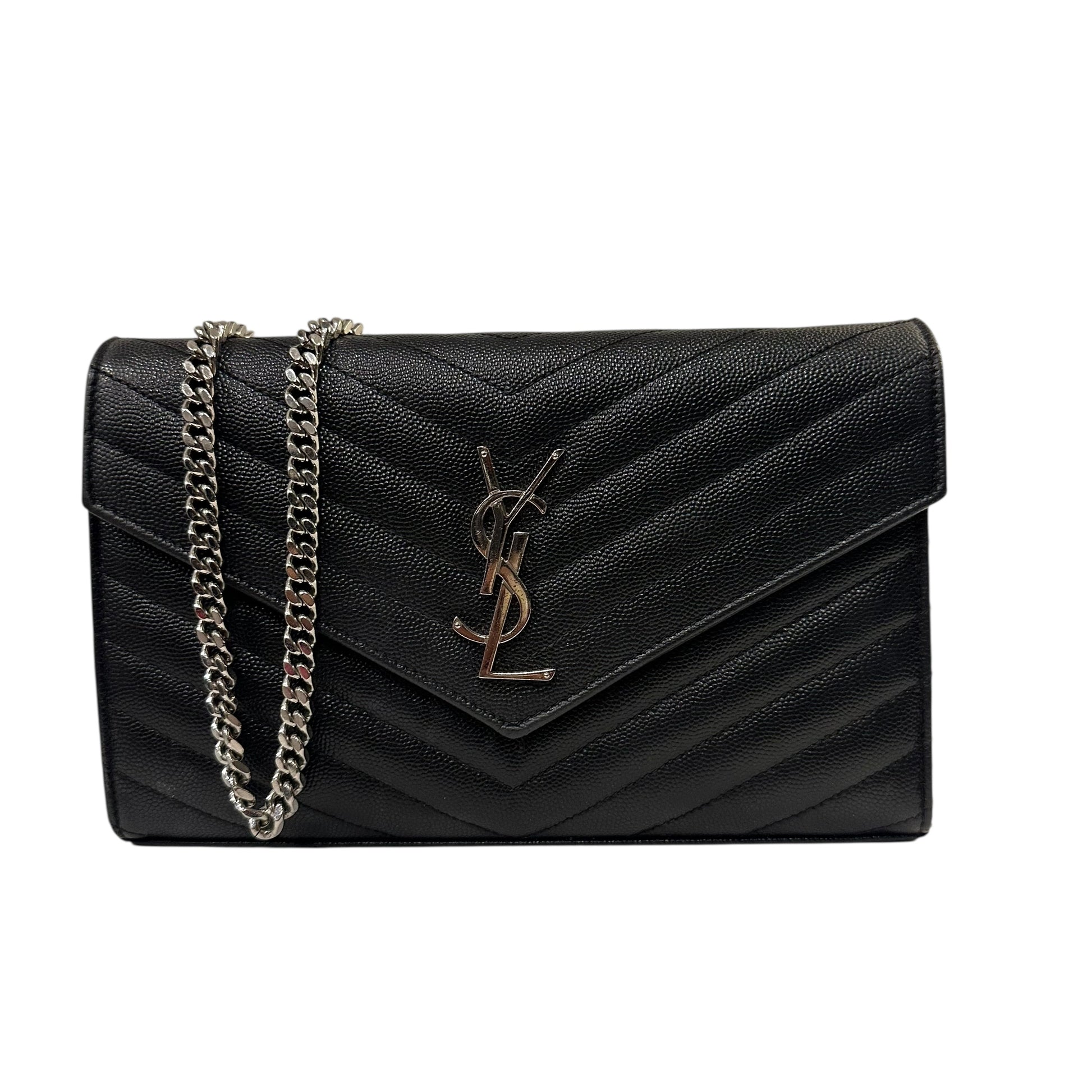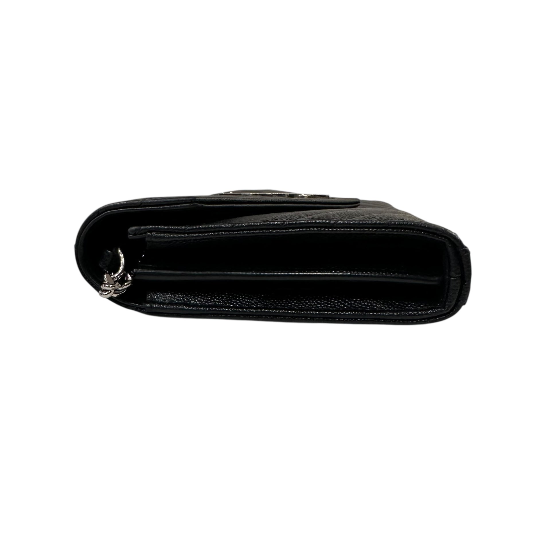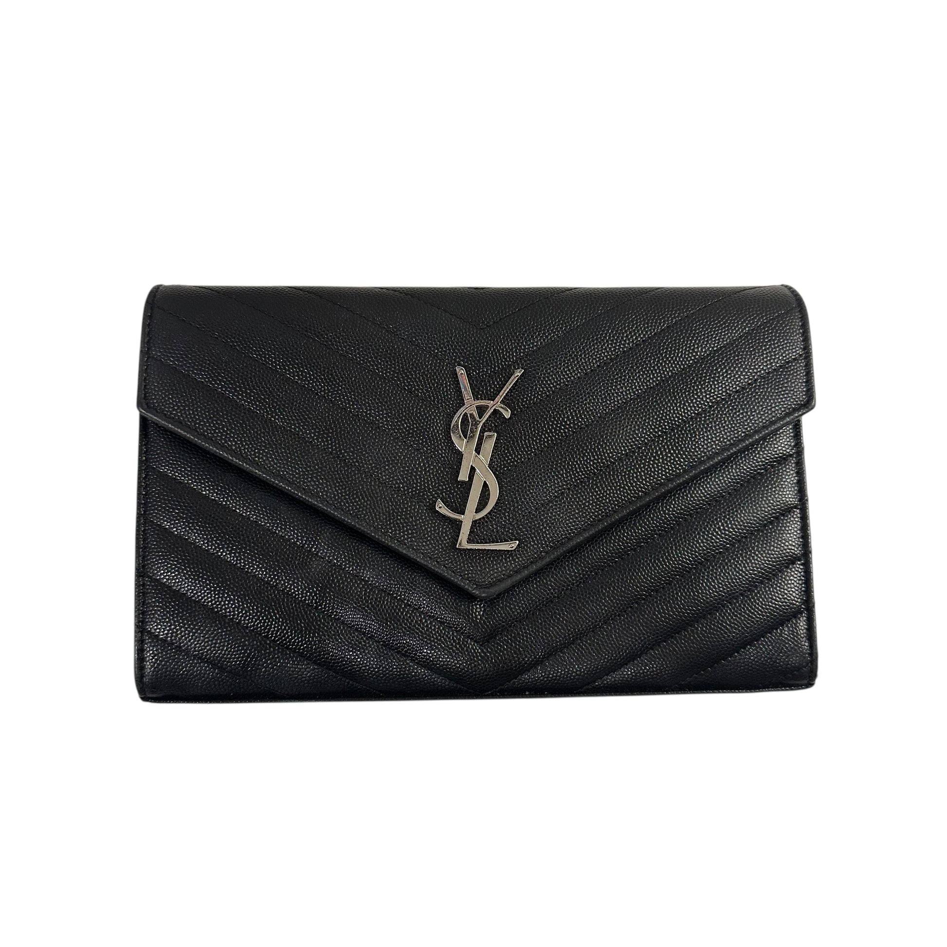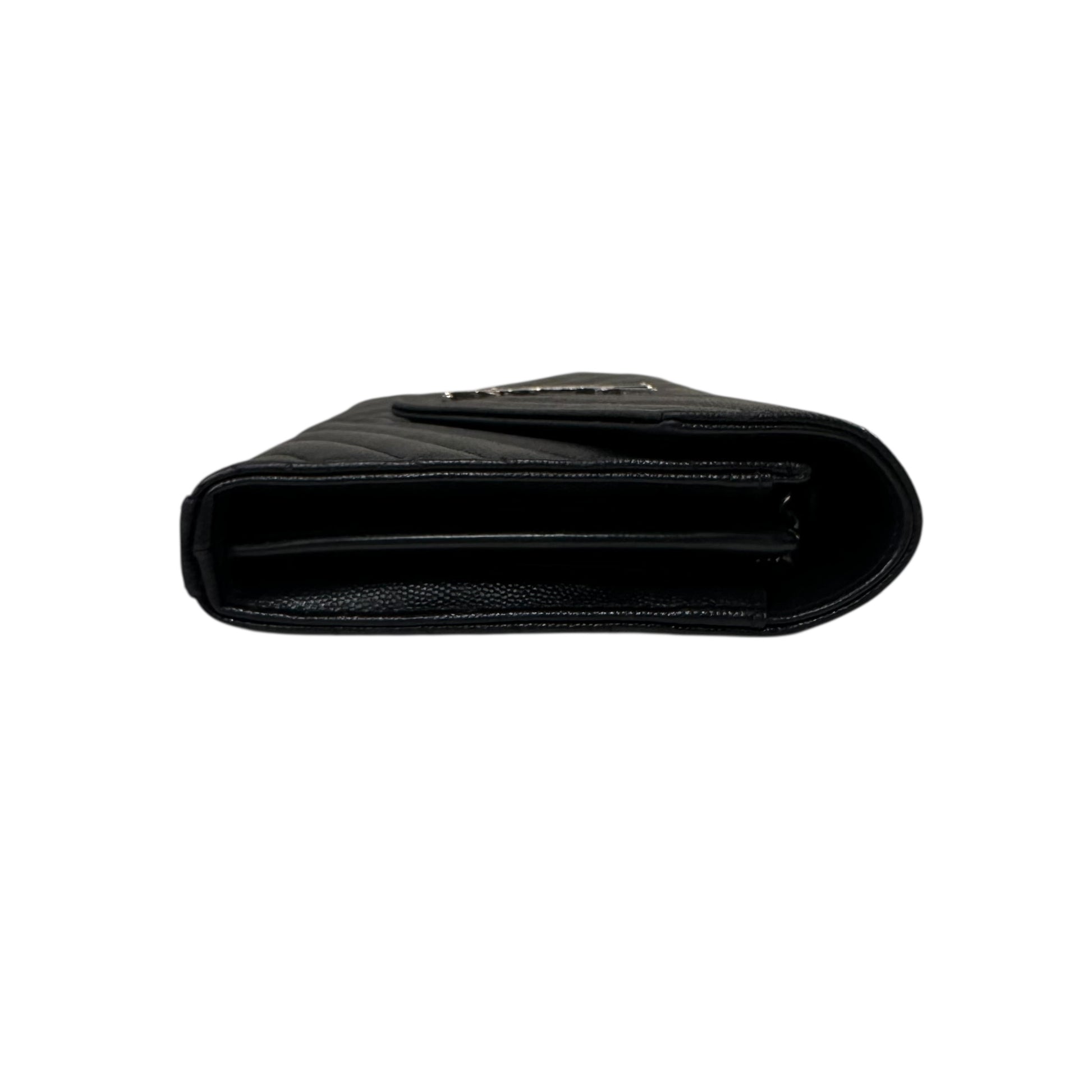 Yves Saint Laurent Black Chevron Cassandre Envelope Wallet On Chain Black/Silver
